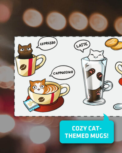 Start your day with the purr-fect mix of coffee and cuteness, featuring artwork drawn by yours truly!