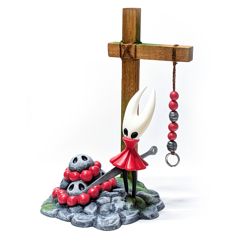 This figure comes with rosary beads, carefully recreated as a resin detail — a nod to the trinkets and charms she gathers on her journey—a perfect piece for fans who want to bring a bit of Silksong’s lore into their collection.