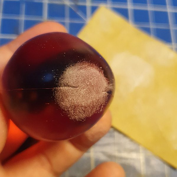 A few big bubbles in your amber give it a natural look, so it’s not a goner. But at that stage, you can’t really get rid of the bubbles anymore. The mistake was made while securing the plastic board to the resin pool. If you trapped a bit of air, then this bubble will rise back into your mold once you flip it. It’s not bad, just try to keep the big bubbles in the middle of the mold by flipping.