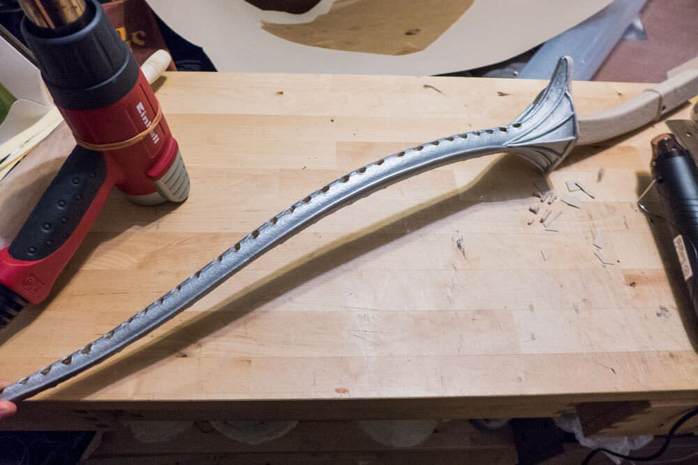 The patterns were cut on craft foam and then covered with Cosplayflex, a great thermoplastic.